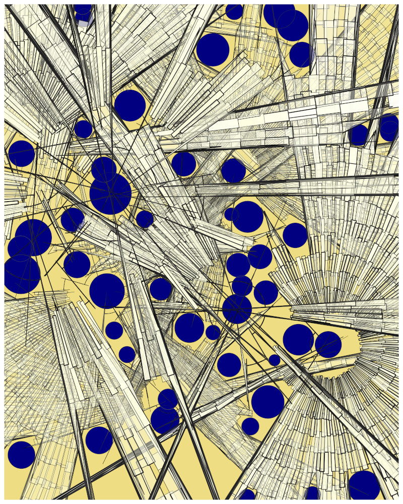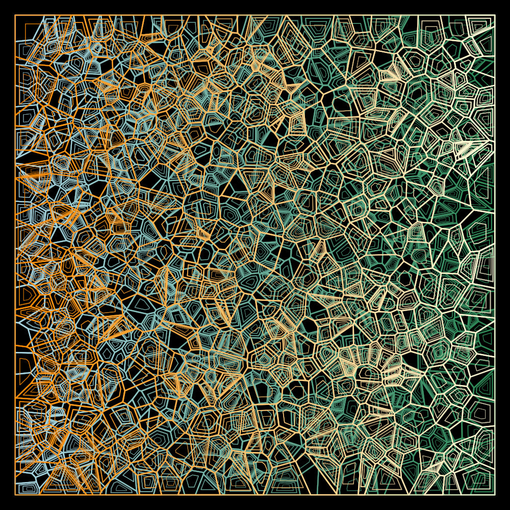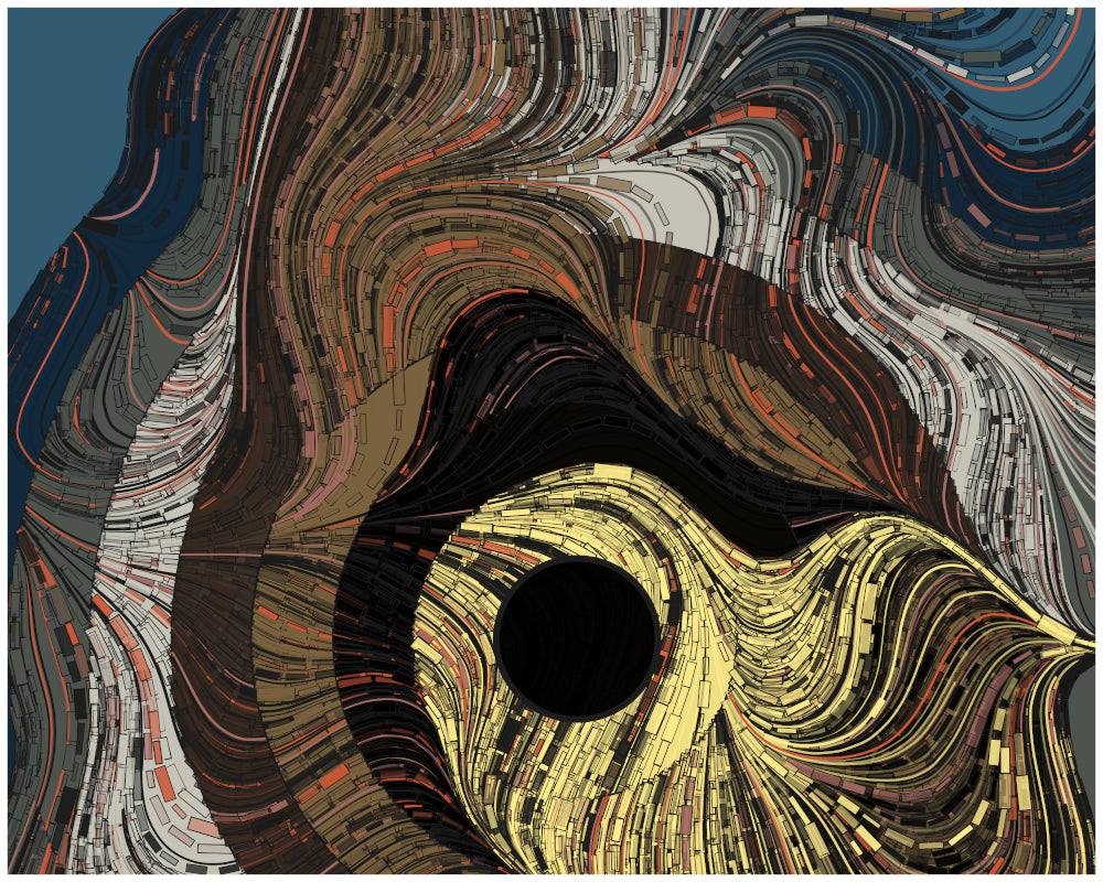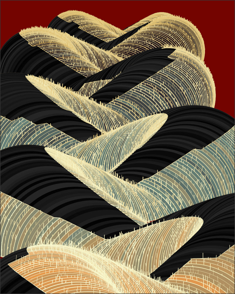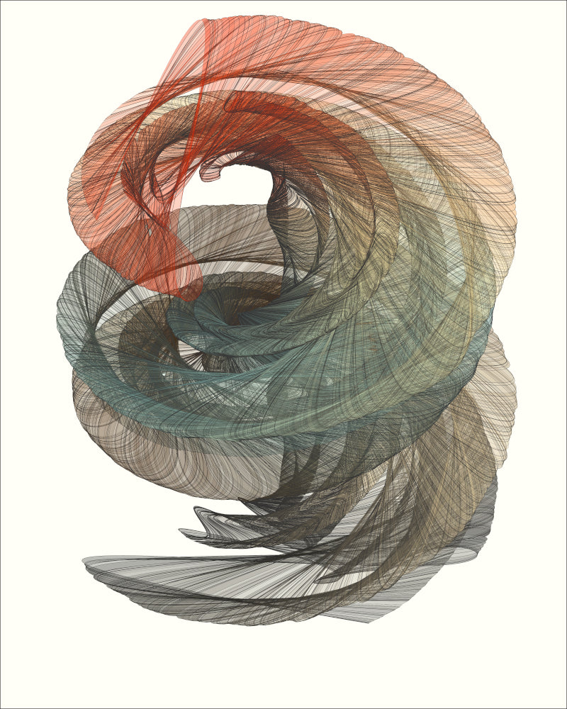 My art reflects the beauty and turbulence of our world. Each artwork is the output of an algorithm, which I write in the R language (or p5.js). Typically, the artistic process begins with a blank image, which develops as I iteratively edit the code and view outputs. Algorithms structure both the stable and varying characteristics. My process has evolved through daily practice, collaborations with different artists, as well as projects developed with art collectors, including fine art prints and non-fungible token collections. My preferred coding tools reflect my experience as research scientist, crafting algorithms for simulations, analyses, and plotting for scientific publications.