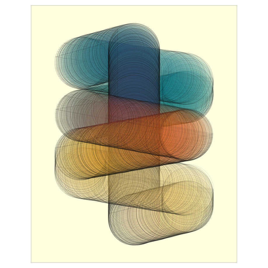 My generative artwork is available as limited or single edition fine art prints from the online shop. Some of these artworks are giclee prints, which involve rich color ink sets on archival paper that are produced by a professional printer. Other artworks are produced with a robotic pen plotter on archival paper at my studio, which have a more hand-drawn look due to the apparatus.