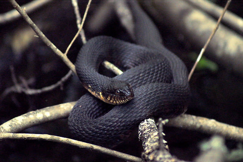 A coiled snake laying on fallen tree branches in the Walterboro Wildlife Sanctuary. Humanitas 2016 Annual Juried Art Exhibit and Literary Publication. Medical University of South Carolina, Charleston, SC. April 20, 2016